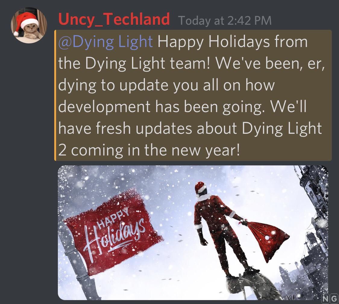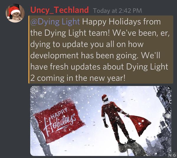 В этом году из стен польской студии Techland почти не было новостей о Dying Light 2. В начале года игру перенесли, а затем и вовсе почти перестали писать о каком-либо статусе разработки. Также она пропустила все выставки и церемонии награждения. Похоже, игроков ждут новости в 2021 году. Студия поздравила пользователей в Discord и сообщила, что с нетерпением ждет, когда сможет рассказать об игре в грядущем году. Остается надеяться, что Dying Light 2 доберется до полок розничных и цифровых магазинов в 2021 году. Ранее релиз был запланирован на весну этого года, а еще в мае было заявлено, что разработка находится на финальной стадии. Точно известно, что в студии был конфликт, а пример релиза Cyberpunk 2077 мог повлиять на сроки. Dying Light 2 выйдет на PC, PS4, PS5, Xbox One и Xbox Series X. | |